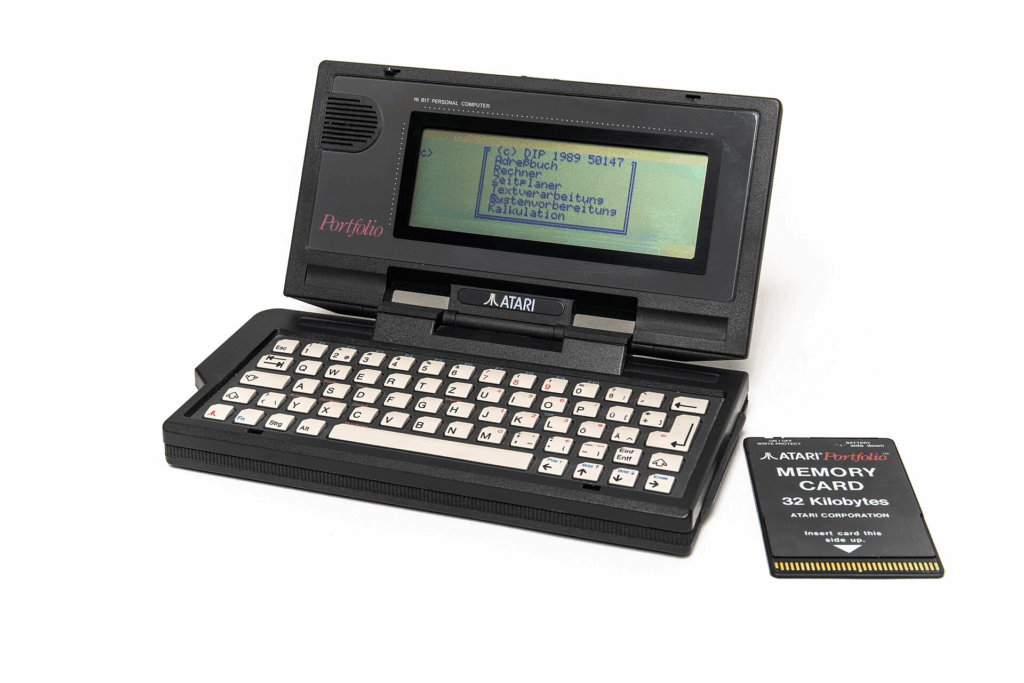 1989 släppte Atari något som på ytan såg ut som en liten fickdator, men som i själva verket var ett helt IBM PC-kompatibelt system. Atari Portfolio blev världens första palmtop-PC, byggd på DIP Researchs design, och satte standarden för vad en dator i fickformat kunde vara.