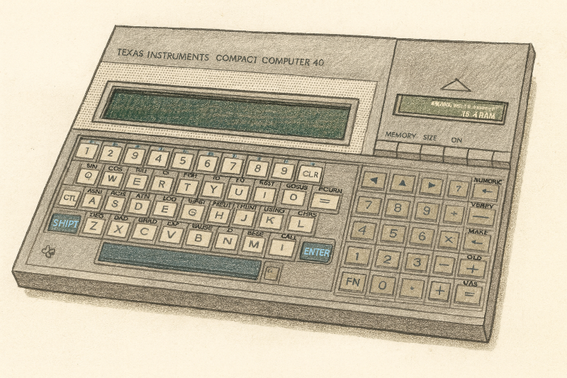 I början av 1980-talet drömde elektronikindustrin om datorer som kunde tas med överallt. Texas Instruments Compact Computer 40 var ett djärvt försök att förverkliga den visionen – en extremt strömsnål och portabel dator som låg tekniskt före sin tid, men som ändå misslyckades med att hitta rätt plats på marknaden.