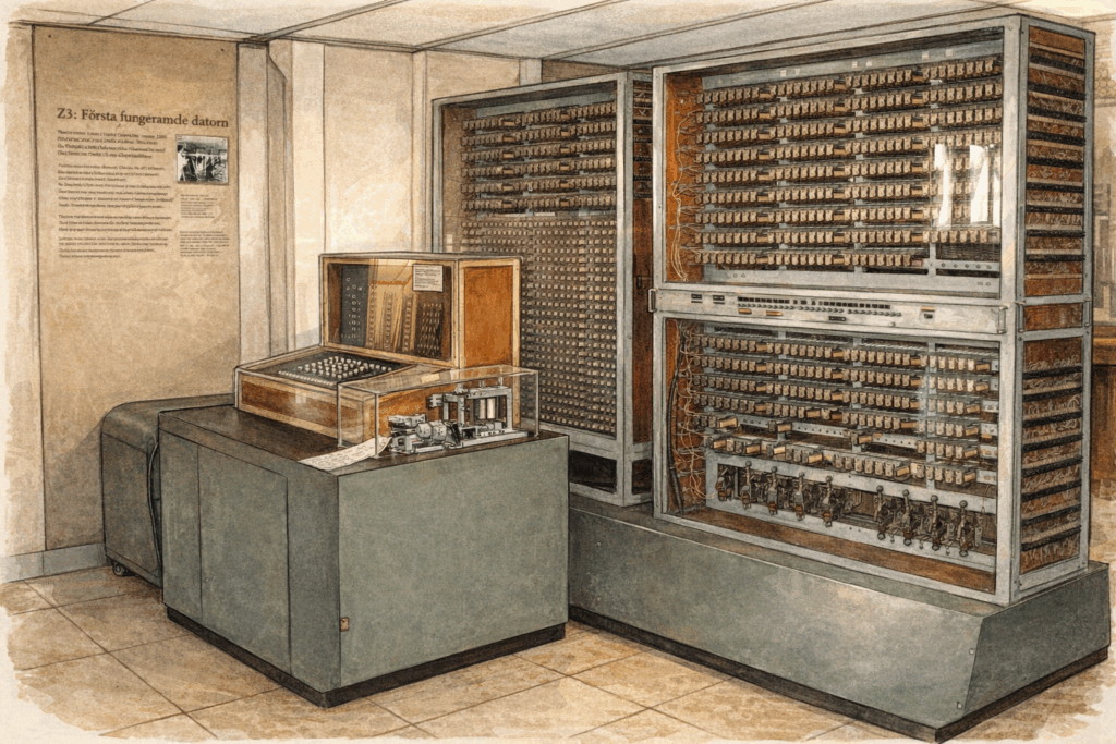 År 1941, mitt under andra världskriget, färdigställdes en maskin i Berlin som i efterhand kom att räknas som en av de viktigaste i teknikens historia. Den kallades Z3 och konstruerades av den tyske ingenjören Konrad Zuse. Z3 var den första fungerande maskinen som kombinerade tre avgörande egenskaper: den var digital, programmerbar och helautomatisk. Det är just denna kombination som gör att Z3 ofta beskrivs som världens första verkliga dator.